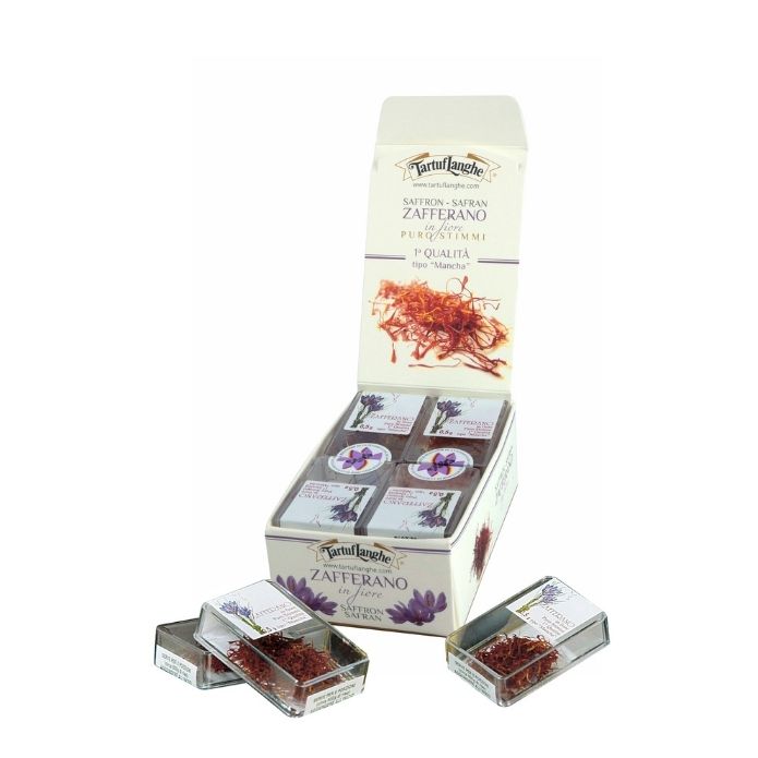 Zafferano puro in stimmi DOP La Mancha, ideale per risotti, salse e piatti di carne, pesce e verdure. Ottima resa e potere colorante: 0,5g per 8 porzioni di risotto.